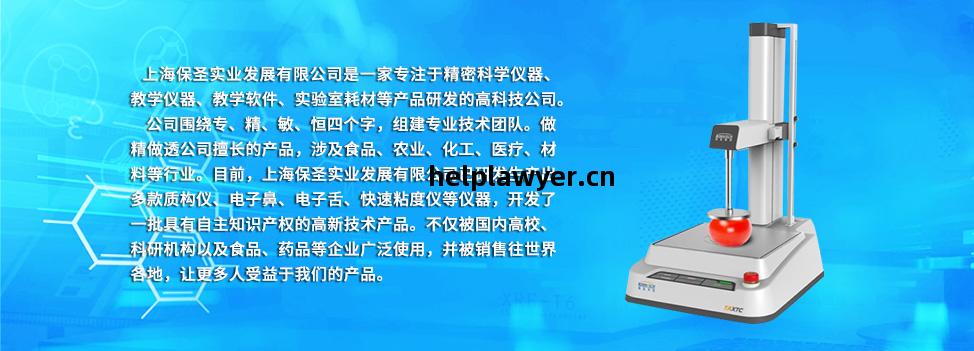 上海保(bao)聖(sheng)實業(ye)發(fa)展(zhan)有(you)限公司(si)成(cheng)立(li)於(yu)2012年,是壹家專(zhuan)註於精密分析儀(yi)器(qi)的研(yan)究、開(kai)發(fa)、生(sheng)產(chan)和銷售(shou)的科技公司(si)。主(zhu)要產(chan)品有:流(liu)變(bian)儀(yi)、質構儀(yi)(物(wu)性(xing)測(ce)試(shi)儀(yi))、電(dian)子鼻(bi)、電子舌(she)、電子眼,快(kuai)速(su)粘(zhan)度(du)儀(yi),GC-O, 嗅(xiu)聞(wen)儀(yi),整(zheng)體感(gan)官(guan)實驗室,感(gan)官(guan)分析軟(ruan)件(jian)等(deng)。公司(si)特別(bie)註(zhu)重(zhong)培養(yang)人才,本科、碩士(shi)學(xue)歷以上(shang)人才占公司(si)總人數(shu)80%以(yi)上(shang);保(bao)聖(sheng)產(chan)品堅(jian)持(chi)高品質,因此贏(ying)得(de)了(le)良(liang)好(hao)的口(kou)碑、加上(shang)優(you)質的服(fu)務使得公(gong)司(si)產(chan)品暢(chang)銷國(guo)內各大高校、研(yan)究所(suo)、食品(pin)、藥品企業(ye)。公(gong)司(si)產(chan)品不僅贏得了(le)雲(yun)南(nan)白(bai)藥、長(chang)沙晶易(yi)、恒瑞制藥、恒生(sheng)制藥、大冢制藥、金(jin)鑼食品(pin)、梅(mei)林食品(pin)、雪(xue)川食品(pin)、雙塔(ta)食品、瀘溪河(he)食(shi)品(pin)等(deng)多家(jia)行業(ye)傑出(chu)企業(ye)的青(qing)睞,更(geng)獲得了(le)江(jiang)南(nan)大(da)學(xue)、復(fu)旦(dan)大(da)學(xue)、上(shang)海交通(tong)大(da)學(xue)、西北大(da)學(xue)、大連工業大(da)學(xue)、西北農(nong)林大(da)學(xue)、南(nan)昌(chang)大(da)學(xue)、山(shan)東農(nong)業大(da)學(xue)、浙(zhe)江(jiang)大(da)學(xue)、河(he)南(nan)工(gong)業(ye)大(da)學、武漢輕(qing)工(gong)大(da)學(xue)、浙(zhe)江(jiang)省(sheng)淡(dan)水(shui)研(yan)究所(suo)、中國(guo)科學院(yuan)自動化研(yan)究所(suo)、貴(gui)州省水(shui)產(chan)研(yan)究所(suo)、中國(guo)科學院(yuan)植物(wu)研(yan)究所(suo)、中國(guo)農(nong)業科學院(yuan)麻類研(yan)究所(suo)等(deng)科研(yan)院所(suo)的高度肯(ken)定(ding)。